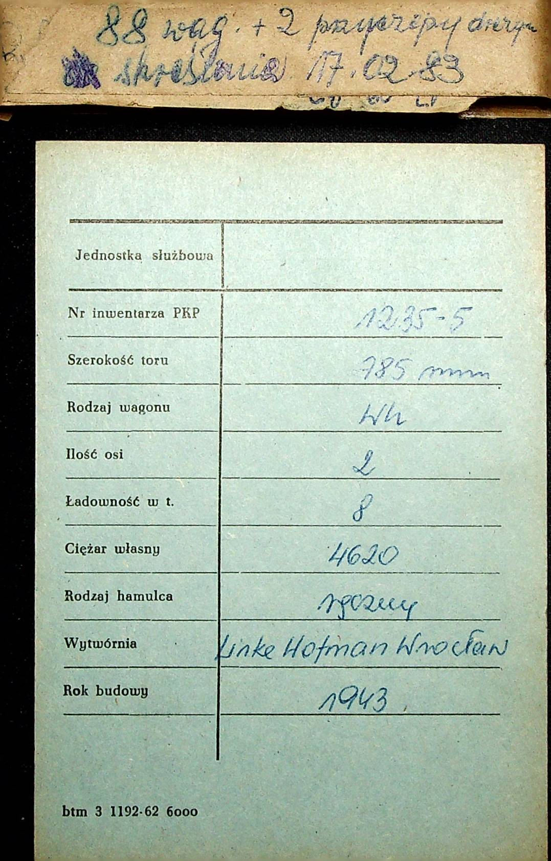 Karta wagonu Górnośląskich Kolei Wąskotorowych |