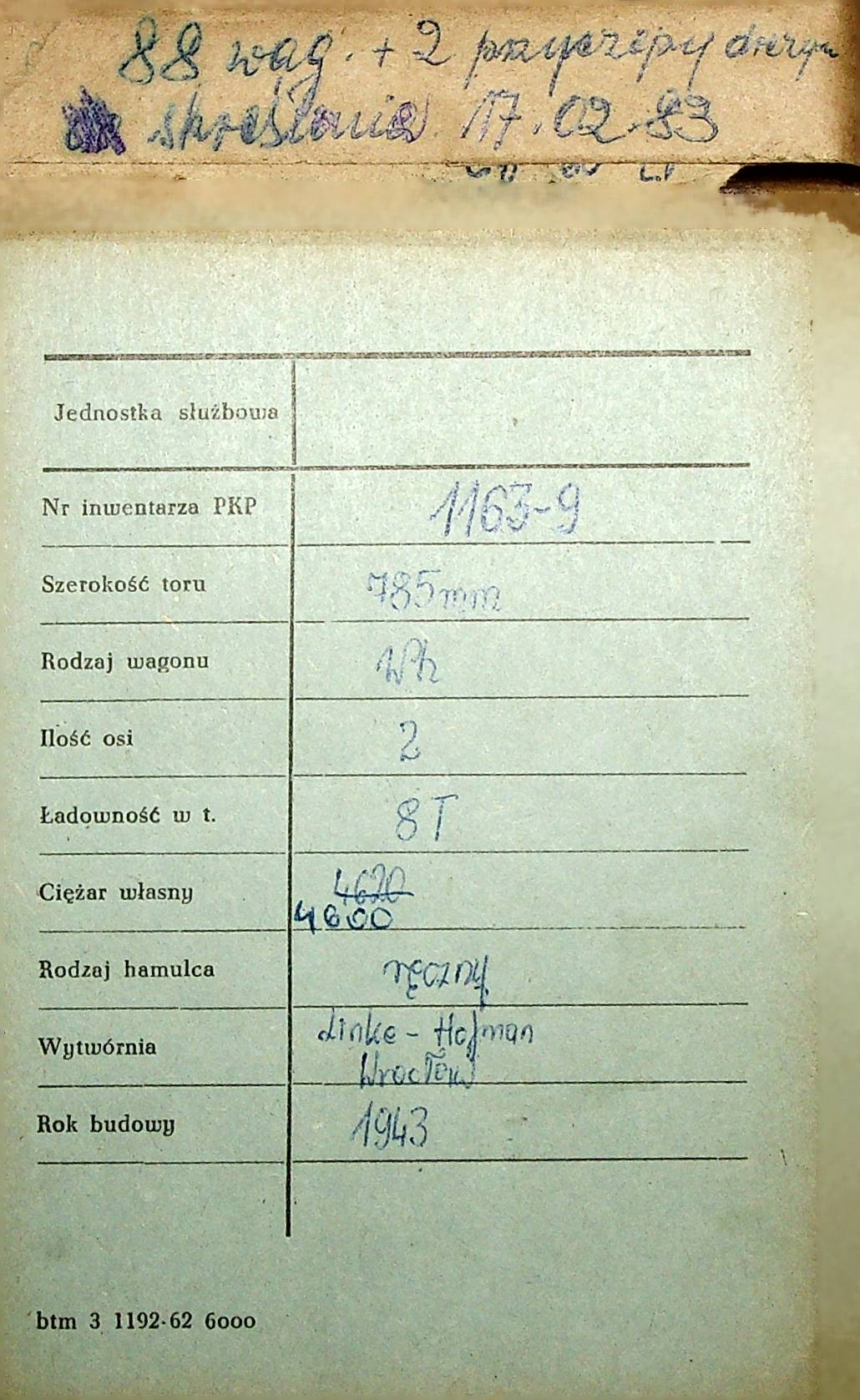 Karta wagonu Górnośląskich Kolei Wąskotorowych |