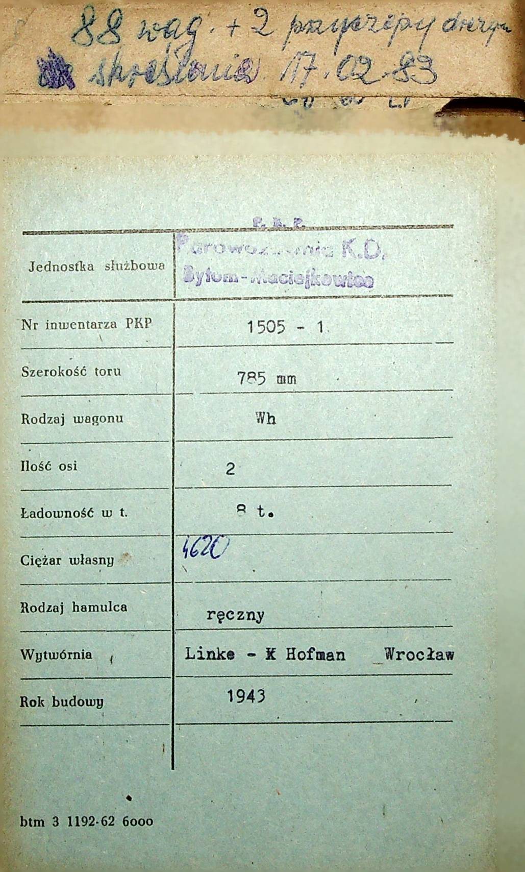 Karta wagonu Górnośląskich Kolei Wąskotorowych |