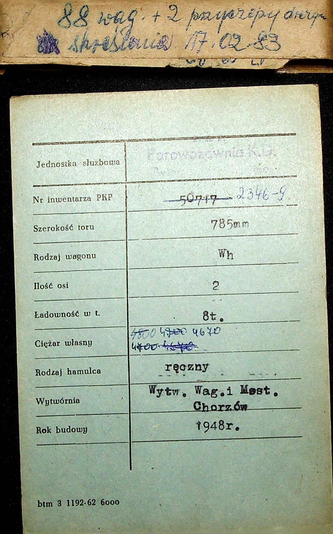 Karta wagonu Górnośląskich Kolei Wąskotorowych |