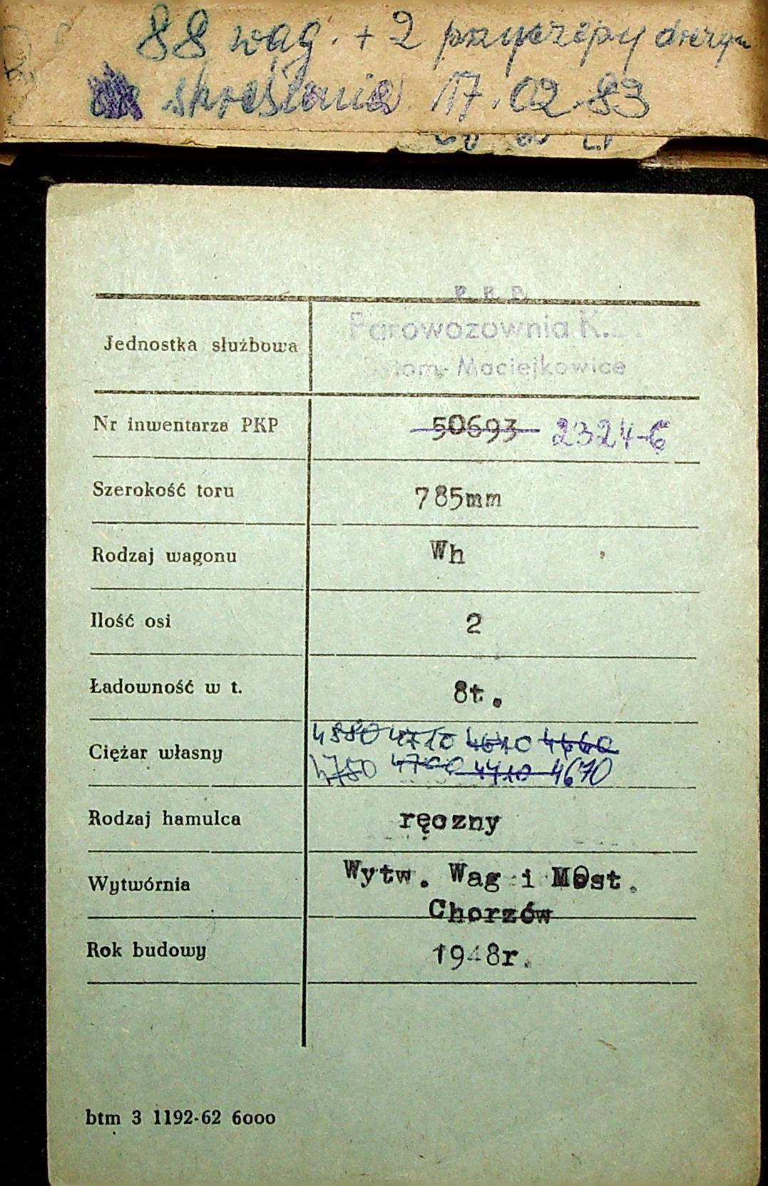 Karta wagonu Górnośląskich Kolei Wąskotorowych |