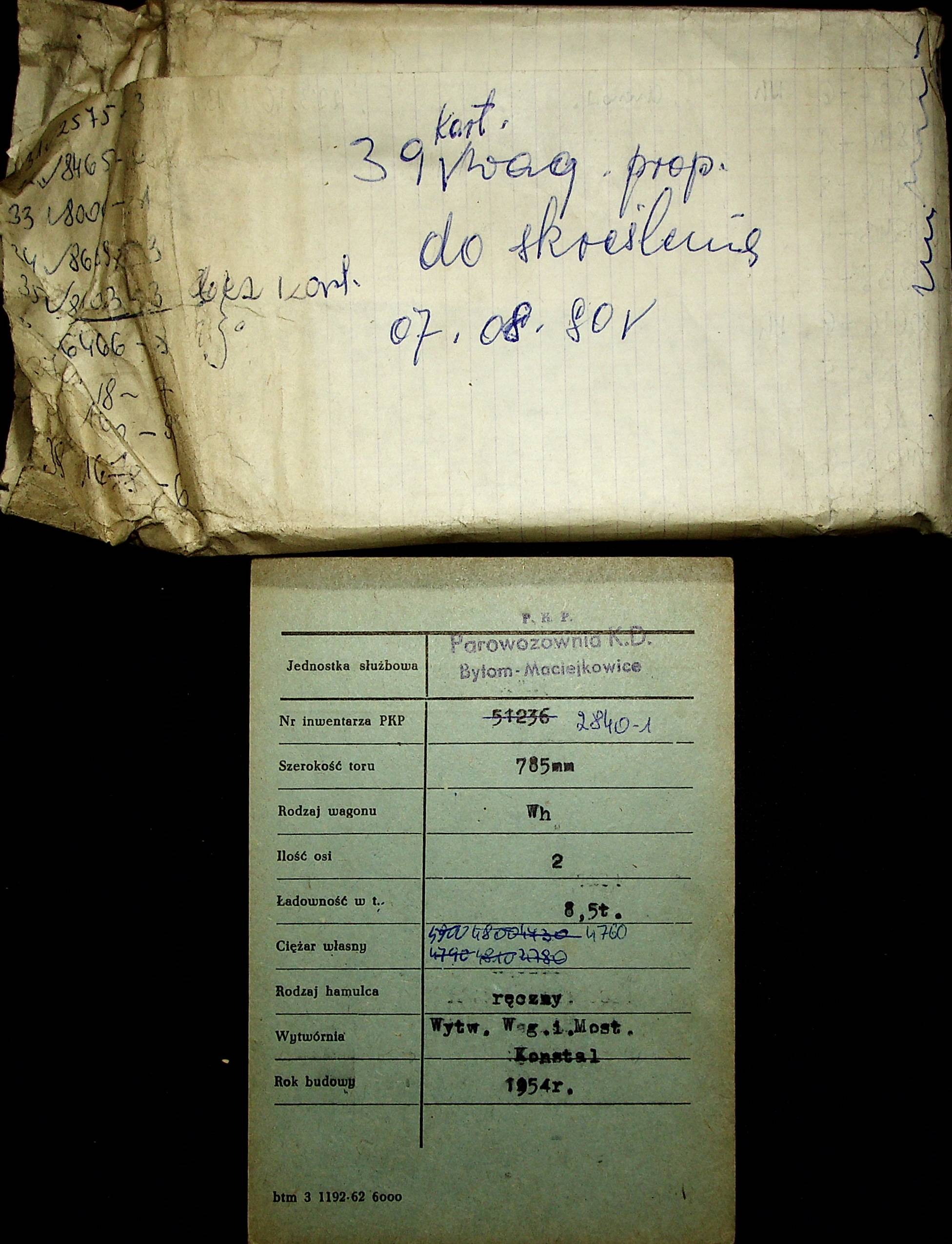 Karta wagonu Górnośląskich Kolei Wąskotorowych |