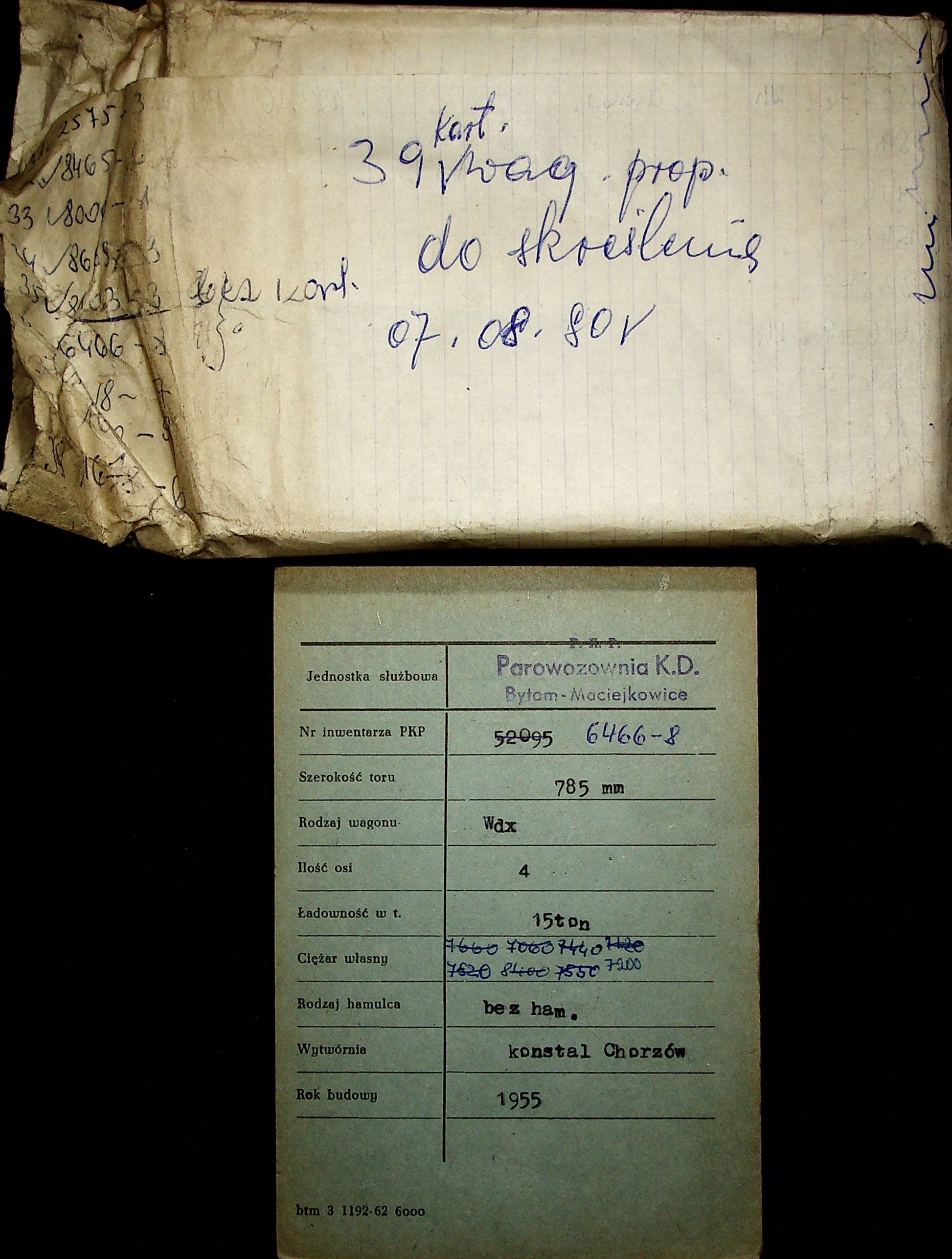 Karta wagonu Górnośląskich Kolei Wąskotorowych |