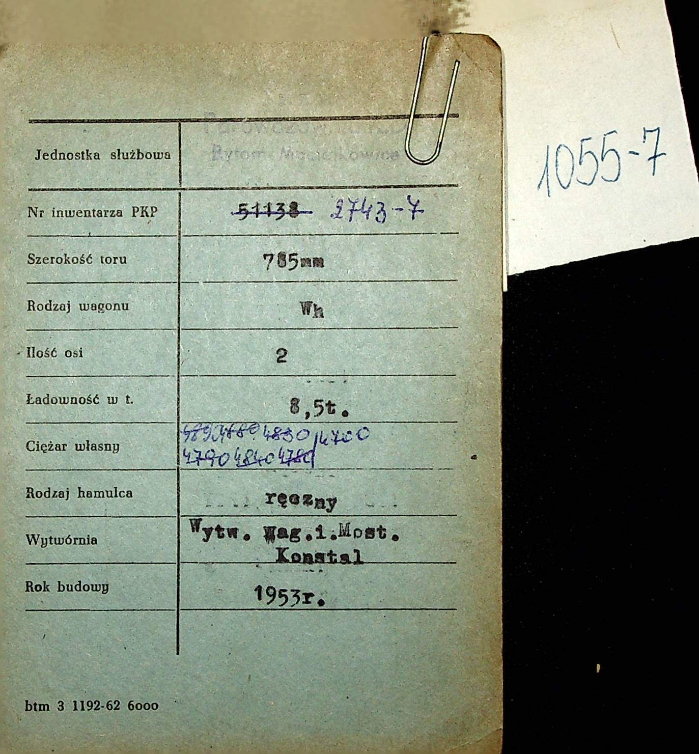 Karta wagonu Górnośląskich Kolei Wąskotorowych |