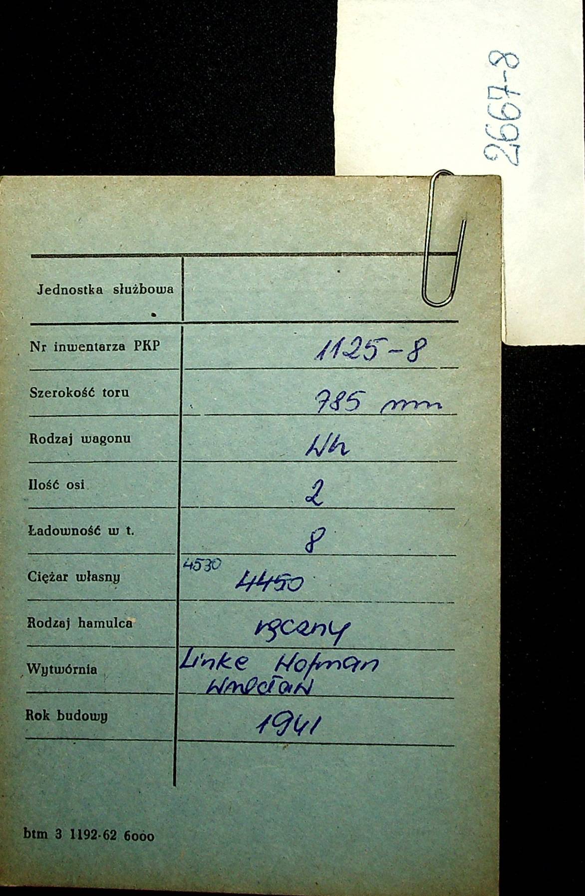 Karta wagonu Górnośląskich Kolei Wąskotorowych |
