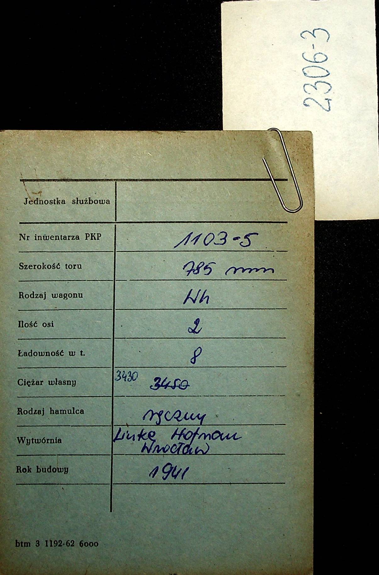 Karta wagonu Górnośląskich Kolei Wąskotorowych |
