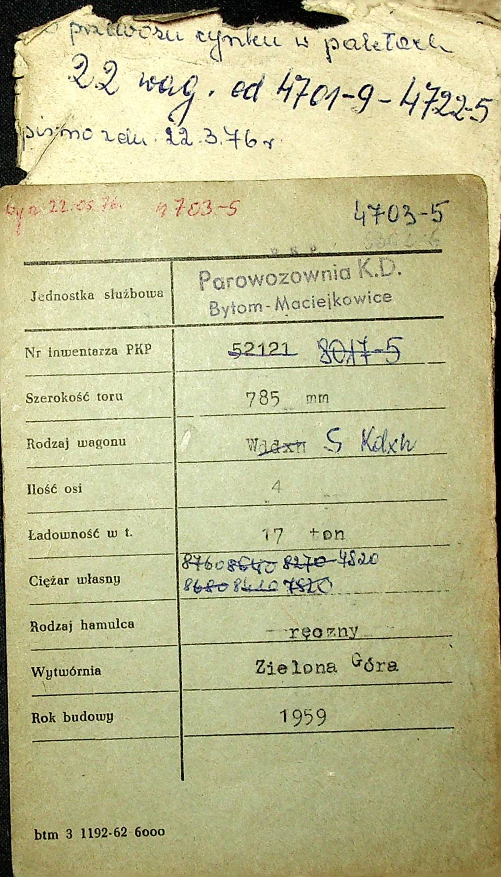 Karta wagonu Górnośląskich Kolei Wąskotorowych |