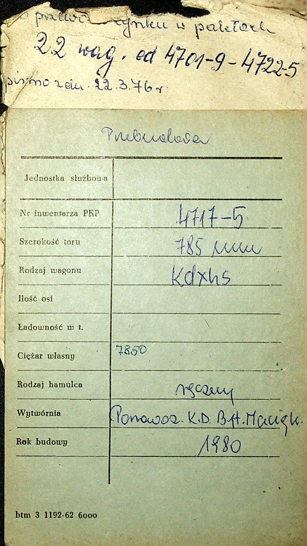 Karta wagonu Górnośląskich Kolei Wąskotorowych |