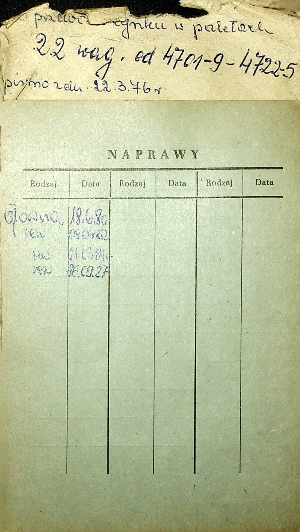 Karta wagonu Górnośląskich Kolei Wąskotorowych |