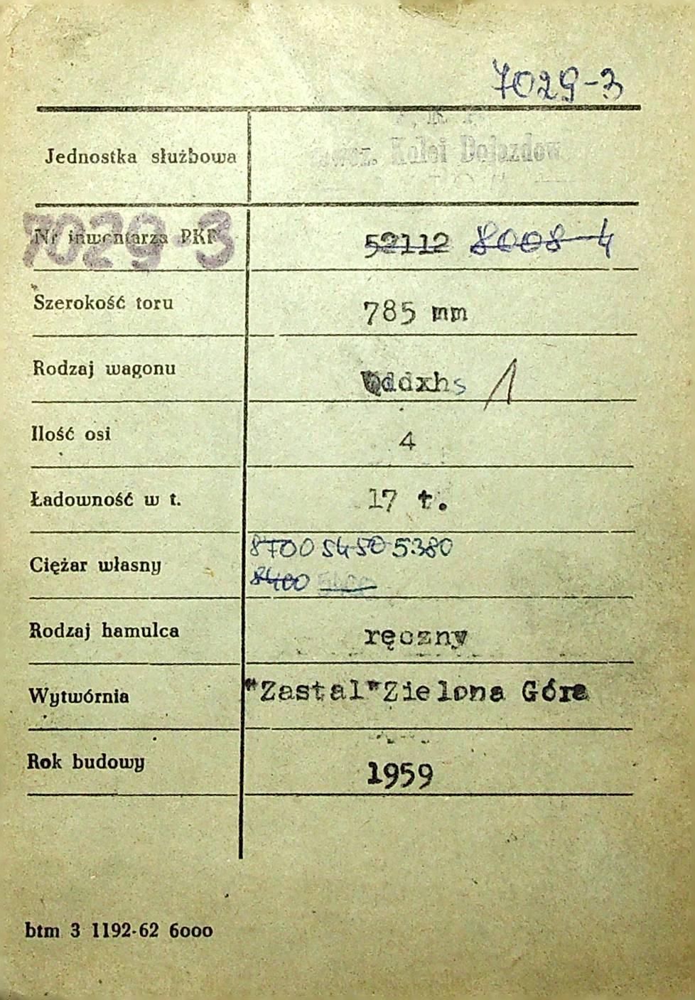 Karta wagonu Górnośląskich Kolei Wąskotorowych |