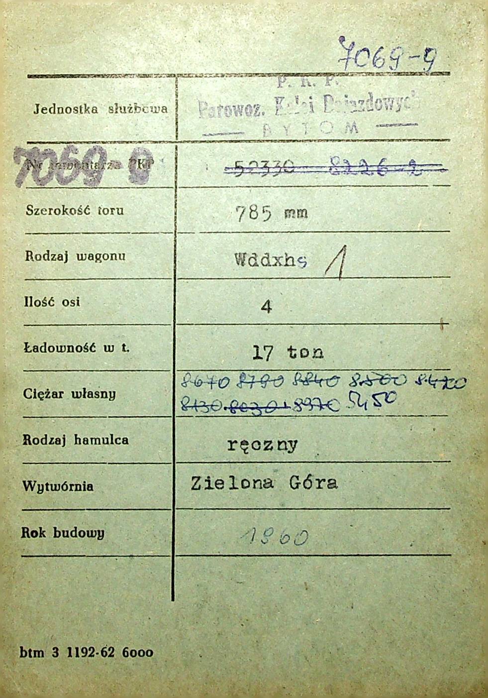 Karta wagonu Górnośląskich Kolei Wąskotorowych |