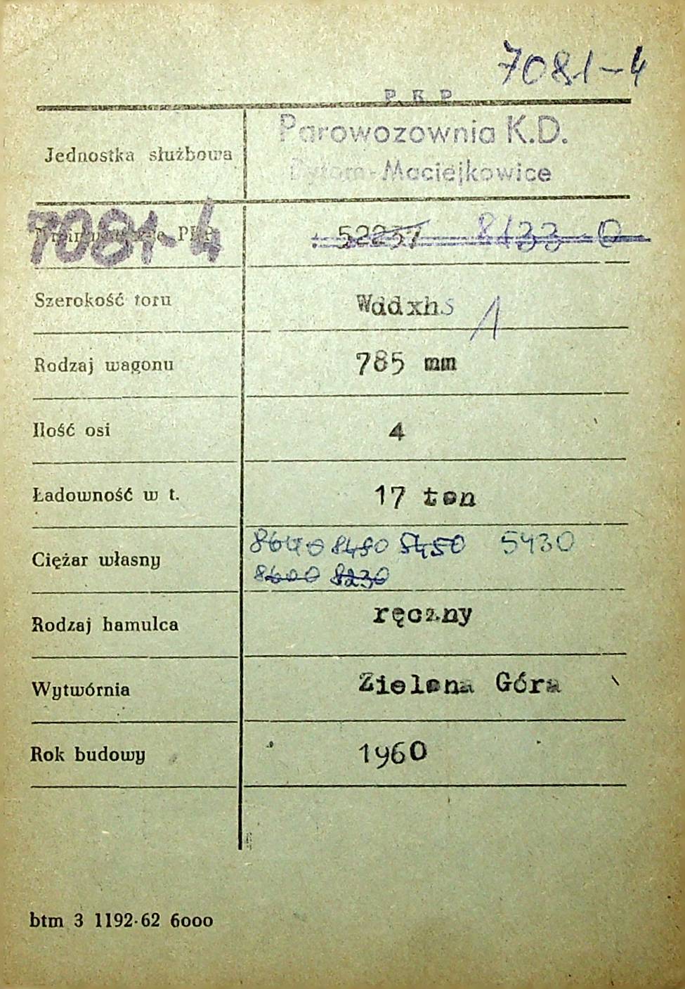 Karta wagonu Górnośląskich Kolei Wąskotorowych |