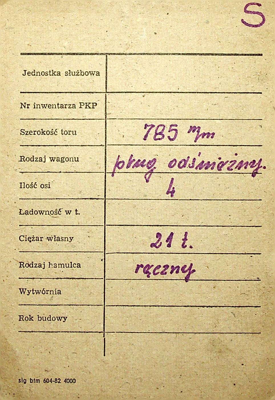 Karta wagonu Górnośląskich Kolei Wąskotorowych |