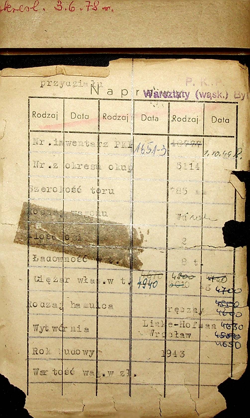 Karta wagonu Górnośląskich Kolei Wąskotorowych |