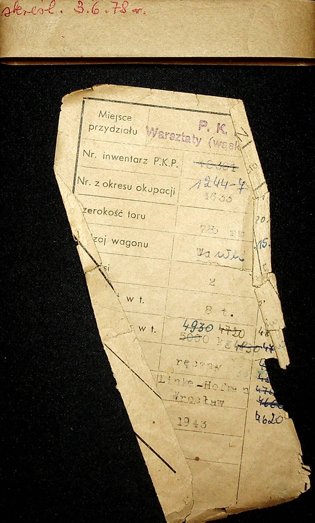 Karta wagonu Górnośląskich Kolei Wąskotorowych |