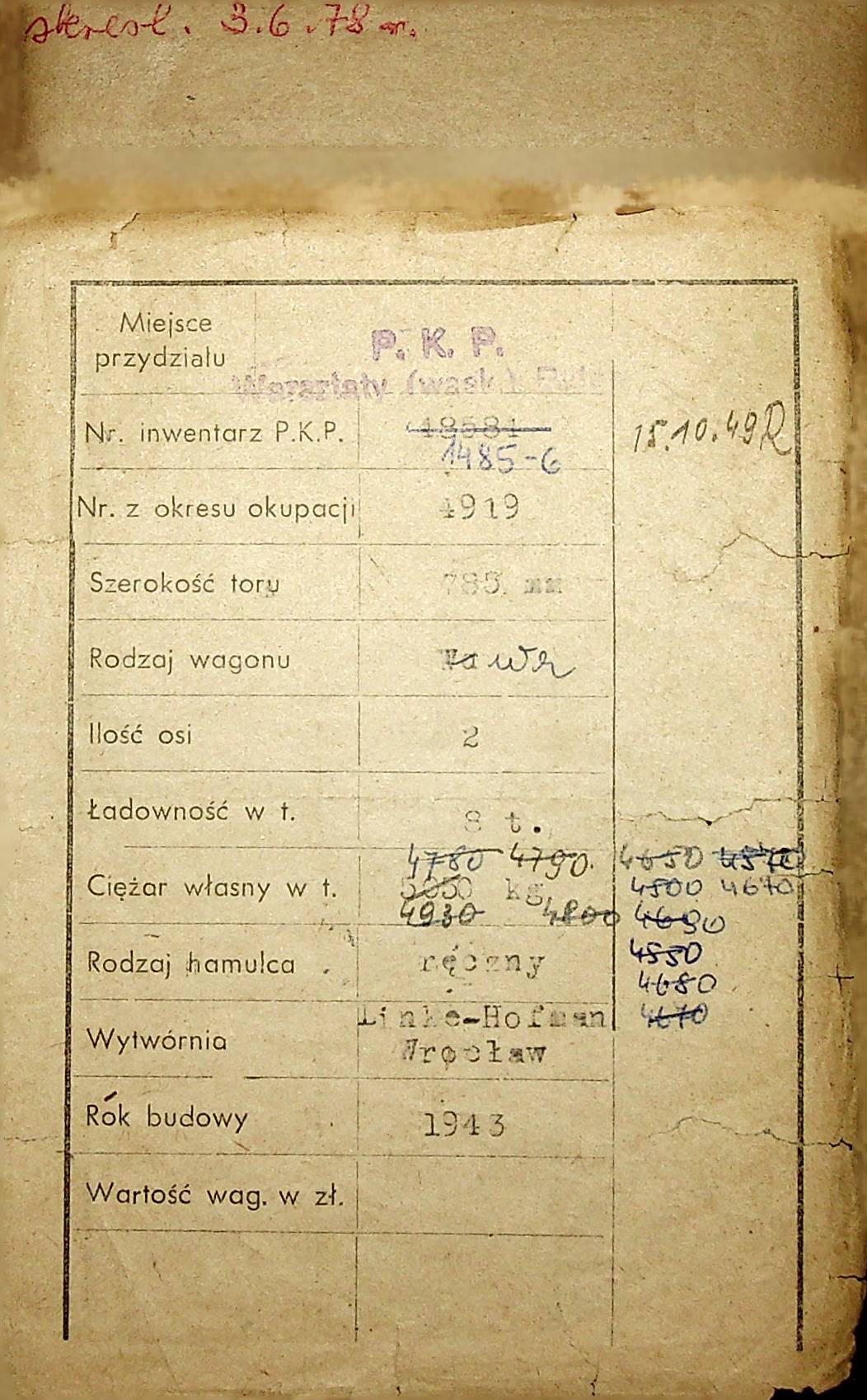 Karta wagonu Górnośląskich Kolei Wąskotorowych |