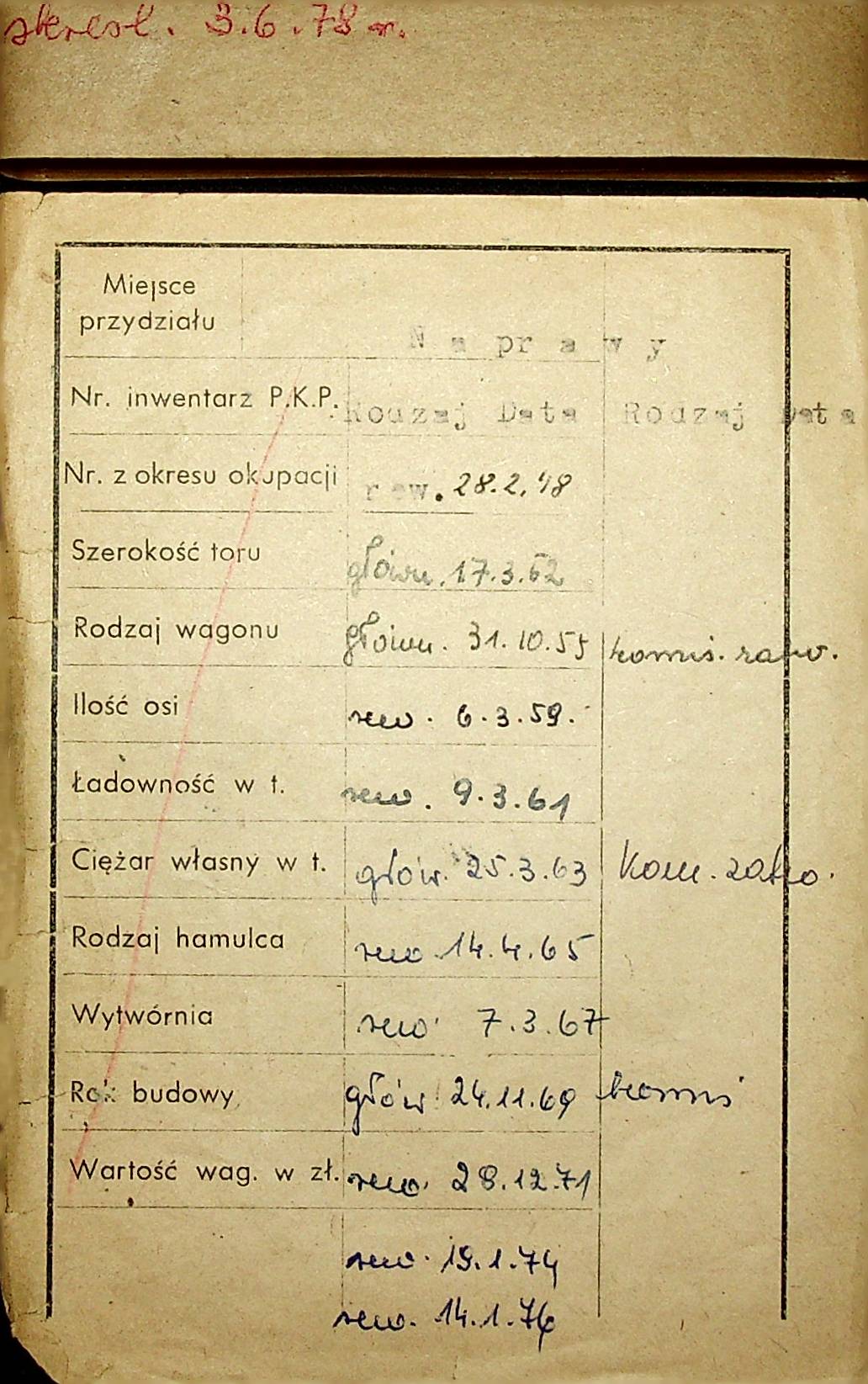 Karta wagonu Górnośląskich Kolei Wąskotorowych |