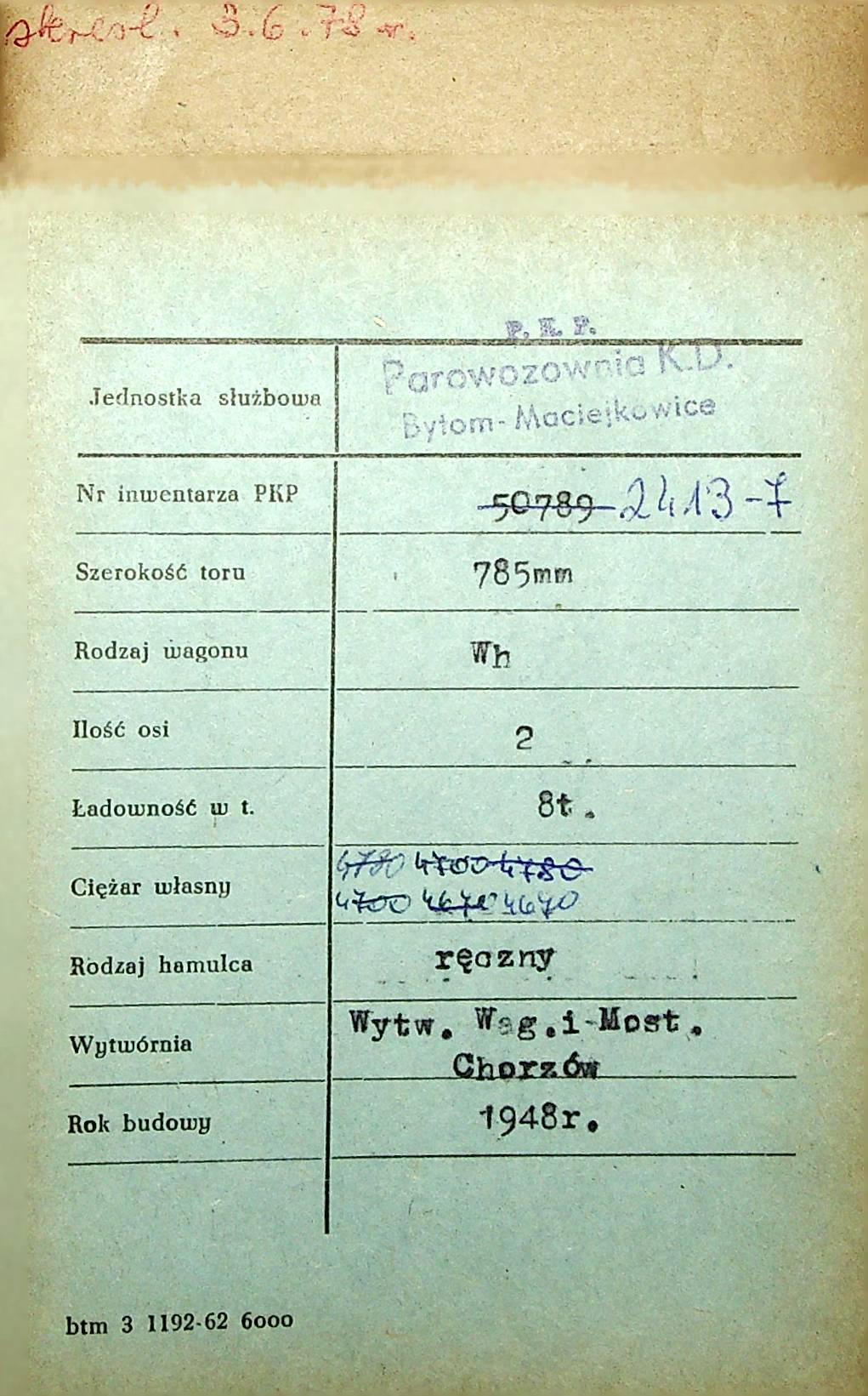 Karta wagonu Górnośląskich Kolei Wąskotorowych |