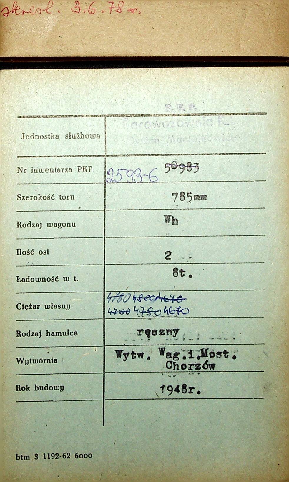Karta wagonu Górnośląskich Kolei Wąskotorowych |