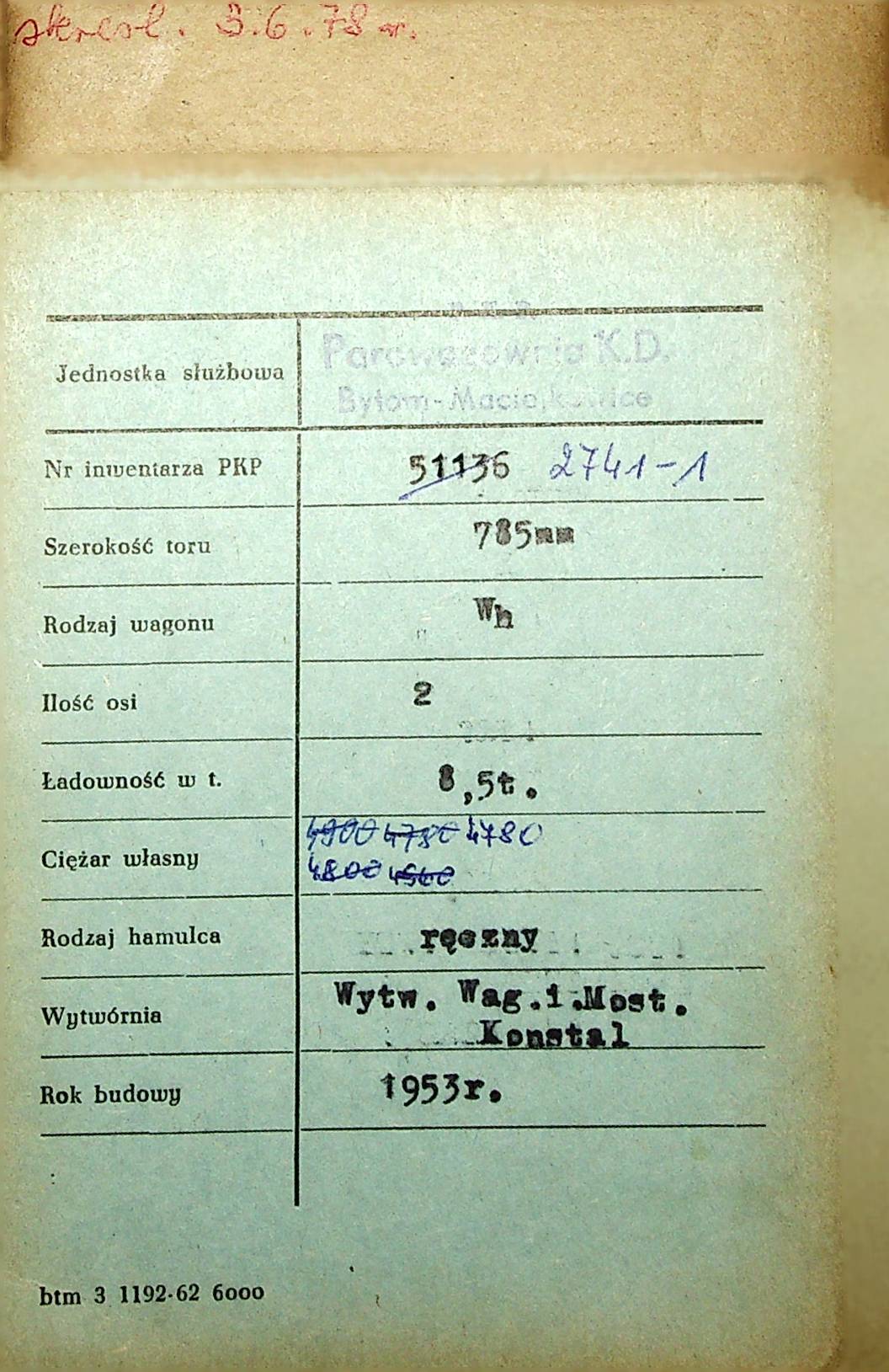 Karta wagonu Górnośląskich Kolei Wąskotorowych |