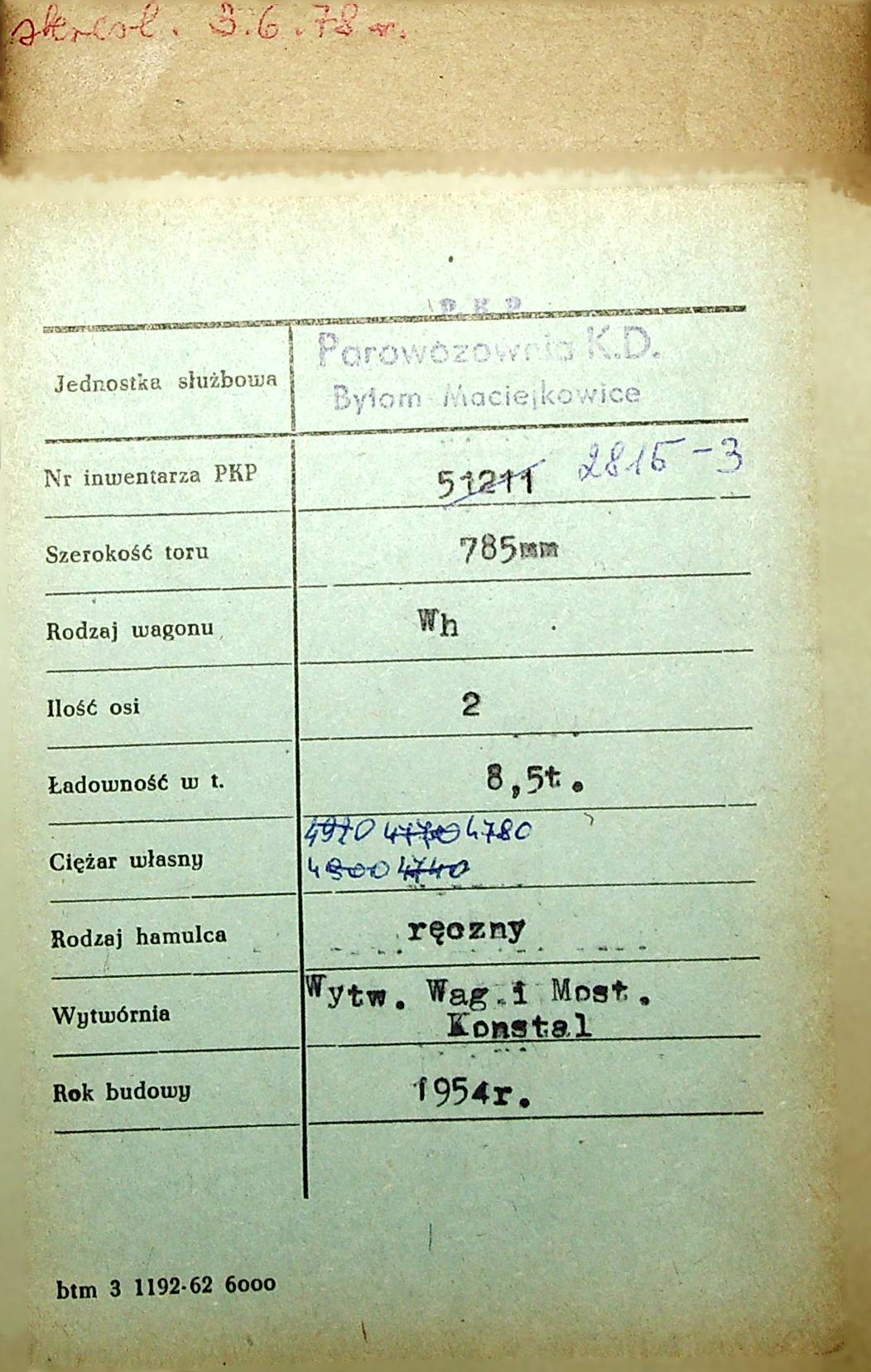 Karta wagonu Górnośląskich Kolei Wąskotorowych |