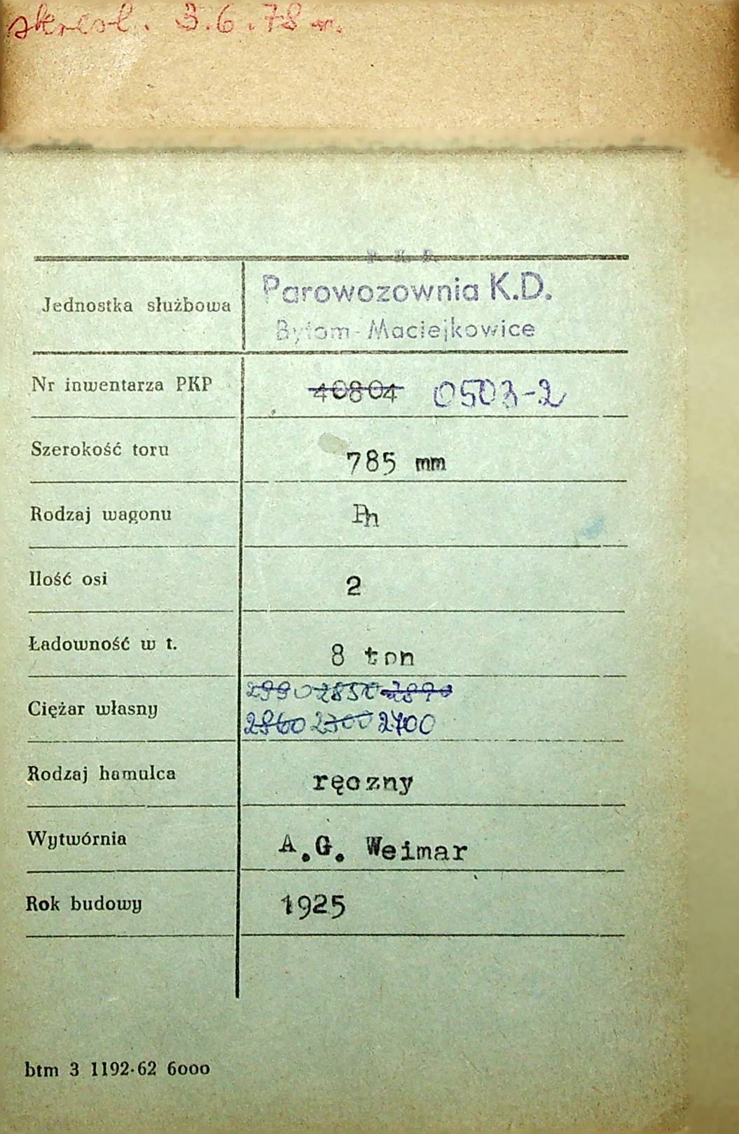 Karta wagonu Górnośląskich Kolei Wąskotorowych |