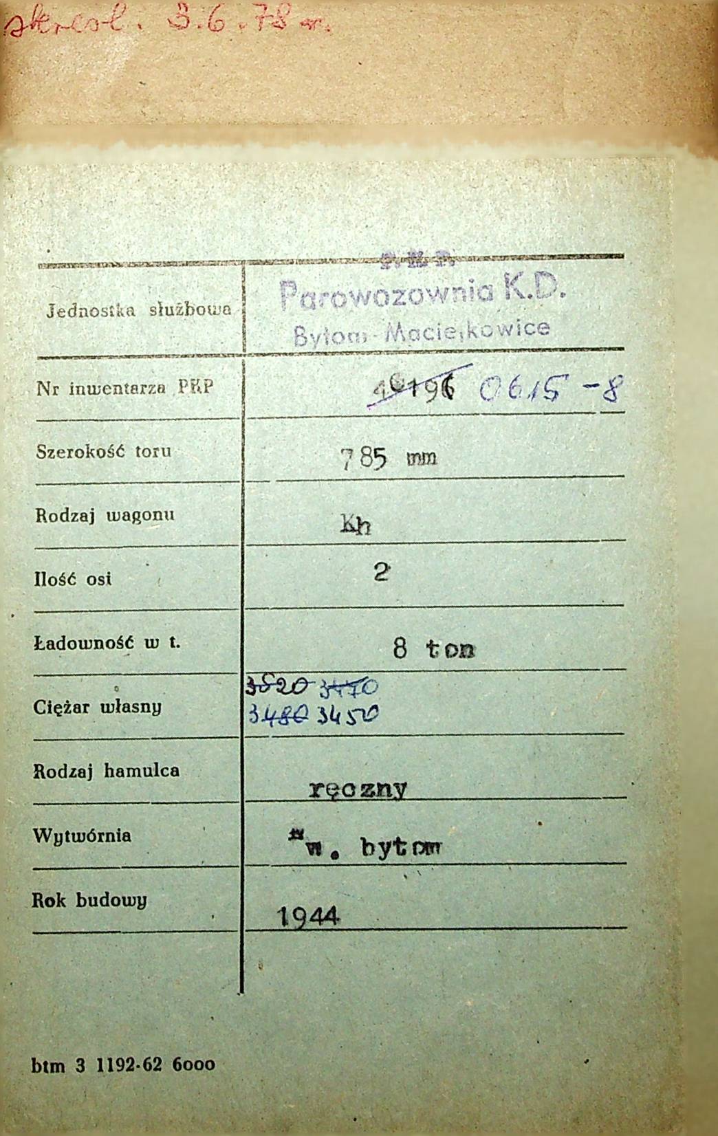 Karta wagonu Górnośląskich Kolei Wąskotorowych |