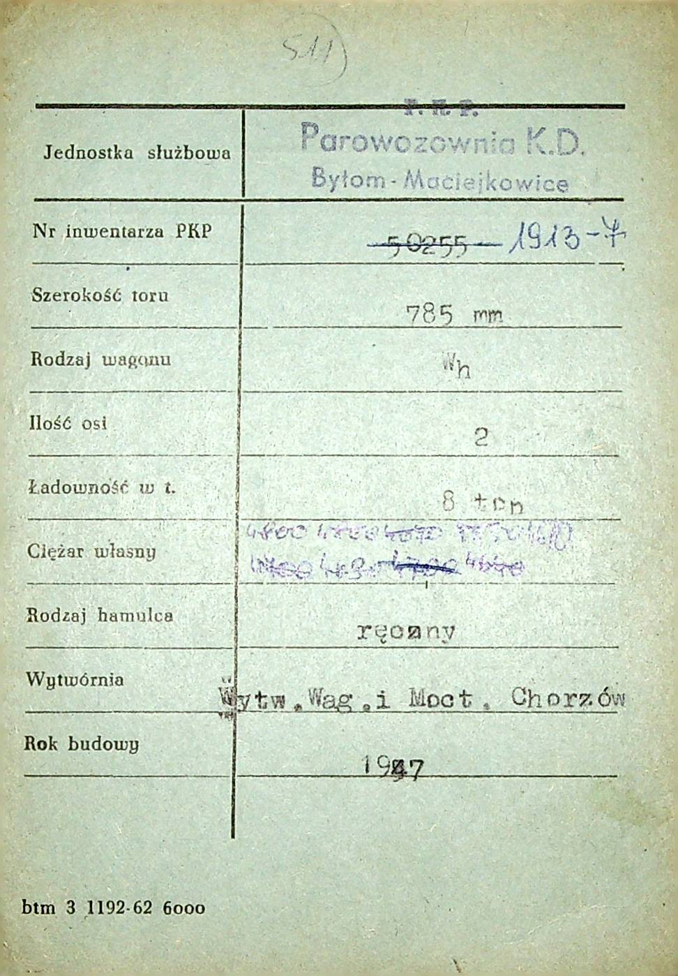 Karta wagonu Górnośląskich Kolei Wąskotorowych |