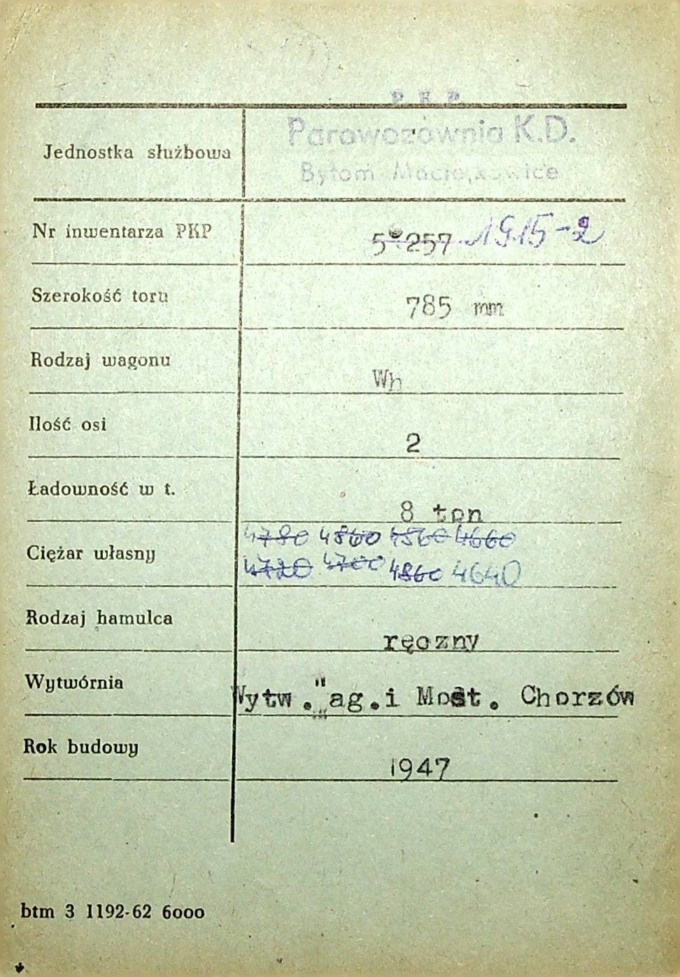 Karta wagonu Górnośląskich Kolei Wąskotorowych |