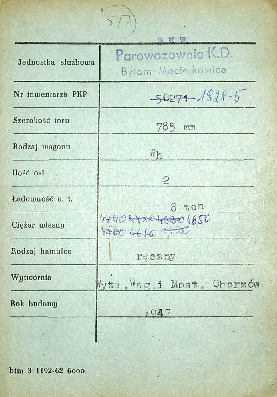 Karta wagonu Górnośląskich Kolei Wąskotorowych |