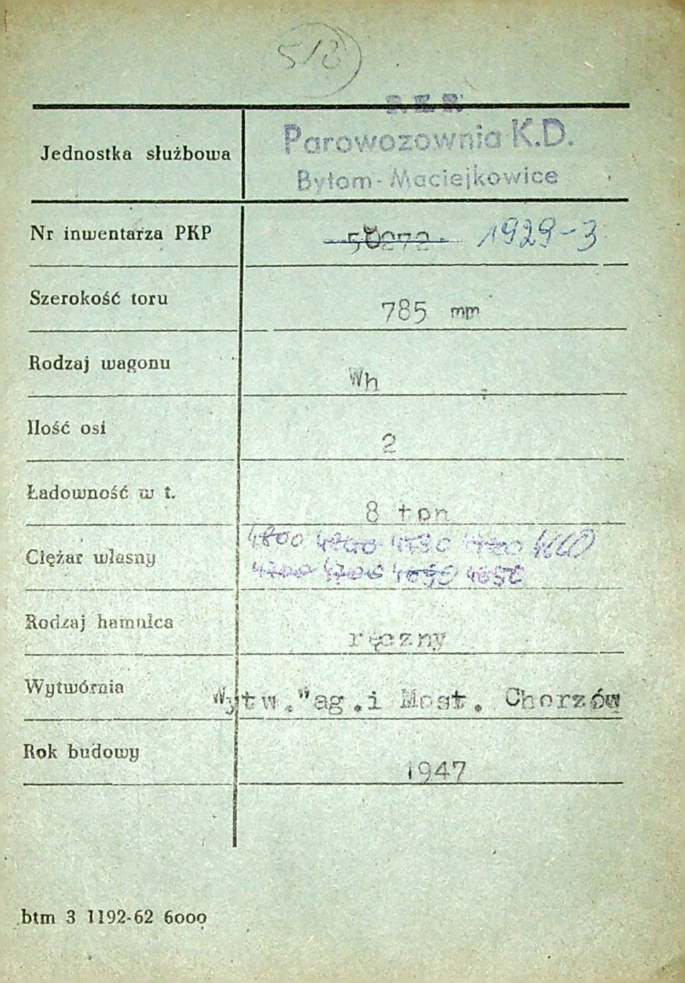 Karta wagonu Górnośląskich Kolei Wąskotorowych |