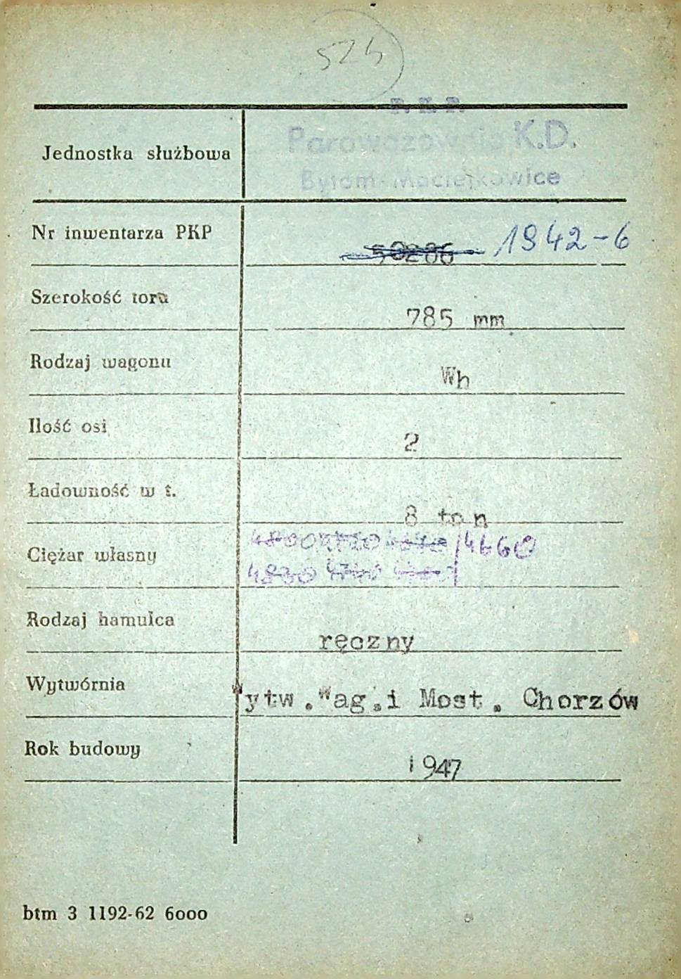 Karta wagonu Górnośląskich Kolei Wąskotorowych |