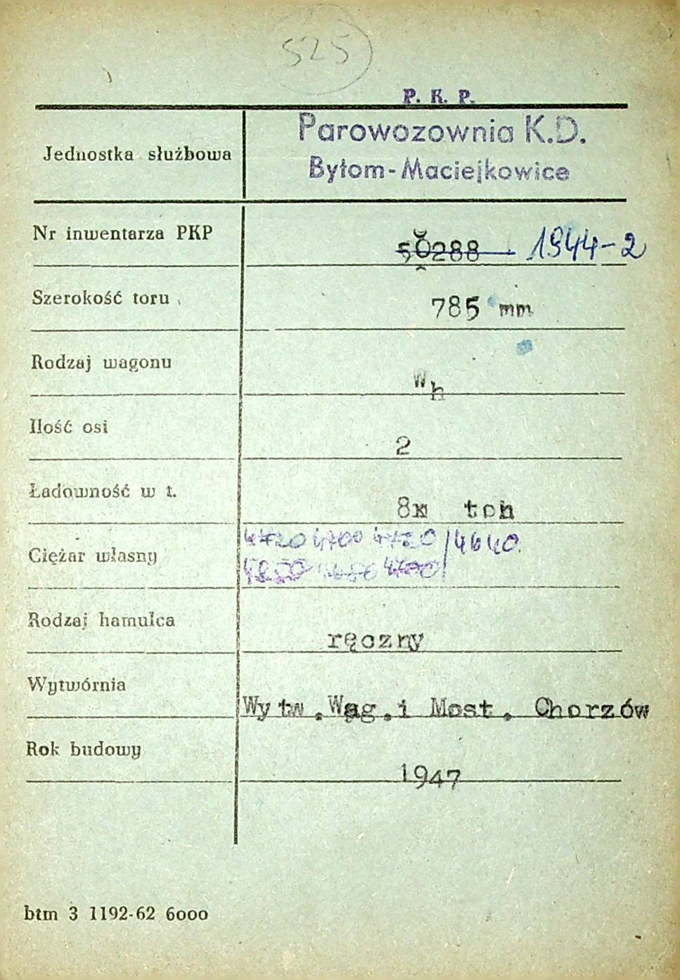 Karta wagonu Górnośląskich Kolei Wąskotorowych |