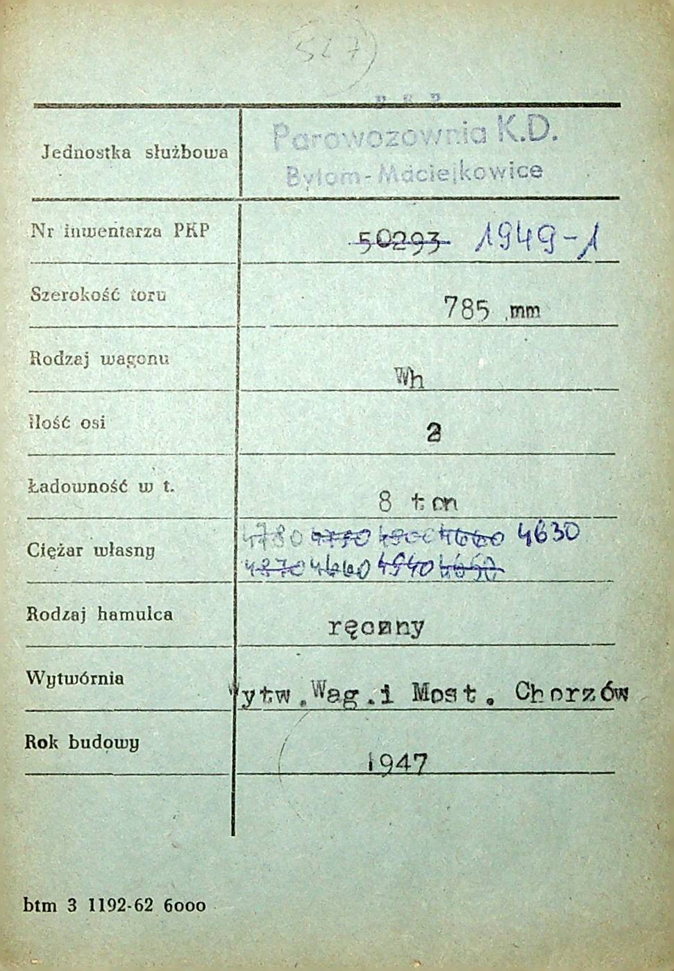 Karta wagonu Górnośląskich Kolei Wąskotorowych |