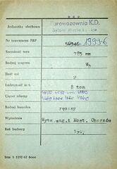 Karta wagonu Górnośląskich Kolei Wąskotorowych |