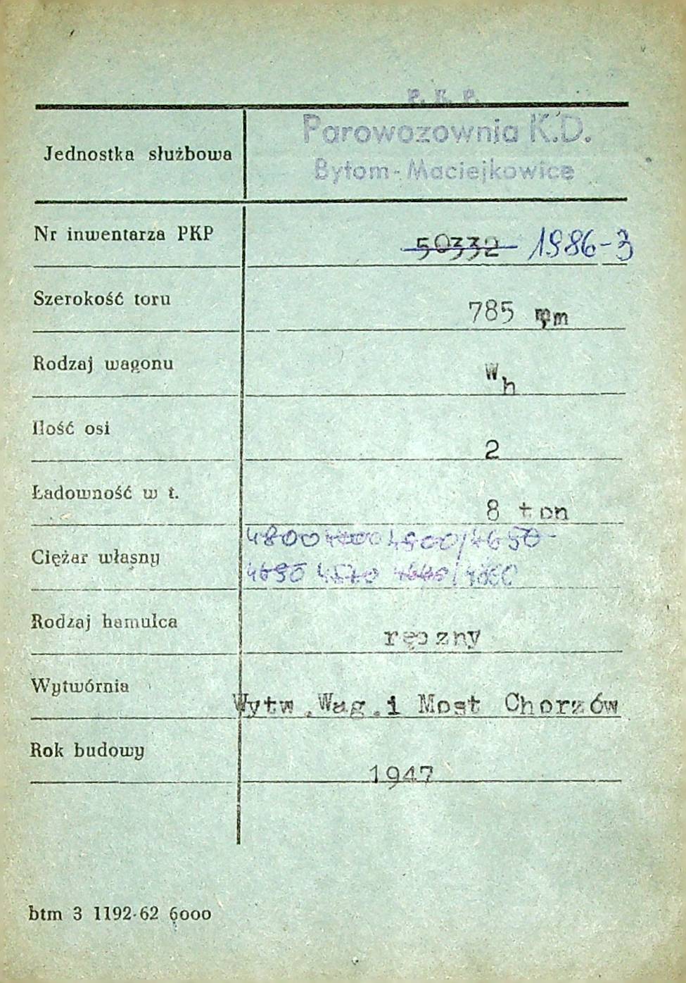 Karta wagonu Górnośląskich Kolei Wąskotorowych |