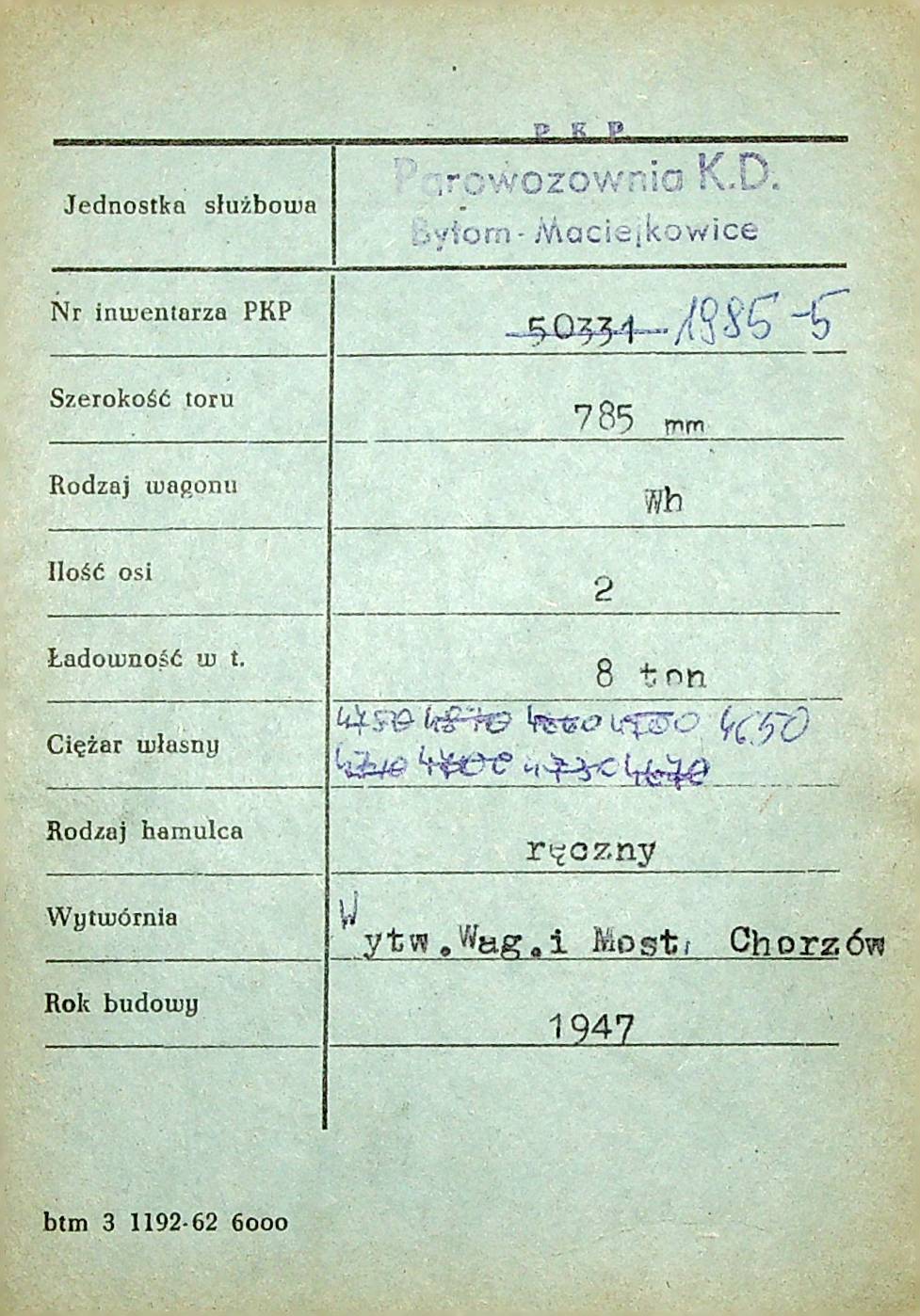 Karta wagonu Górnośląskich Kolei Wąskotorowych |