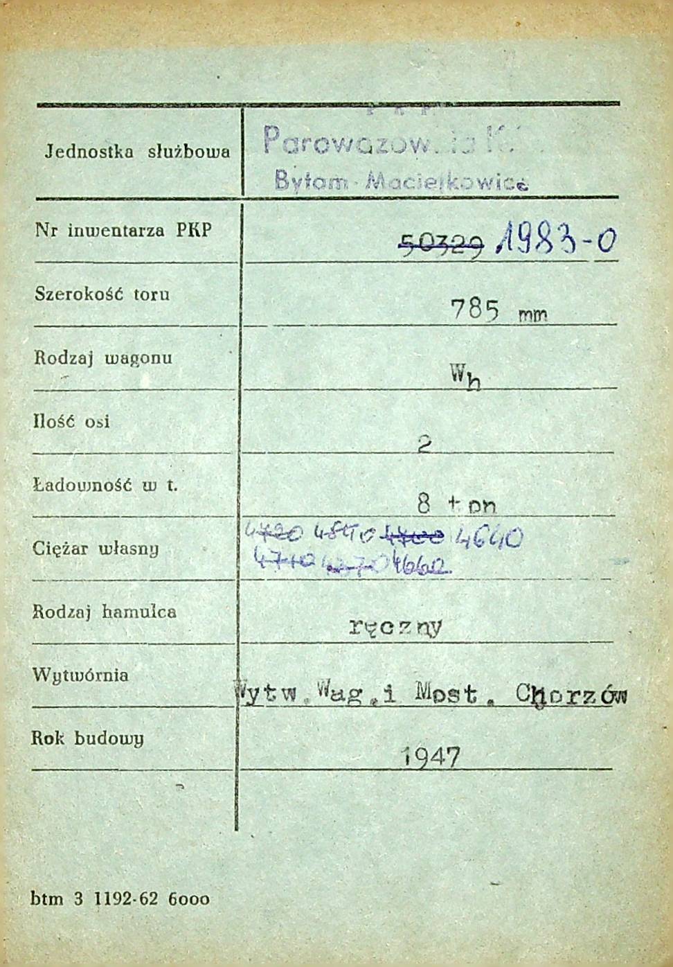 Karta wagonu Górnośląskich Kolei Wąskotorowych |