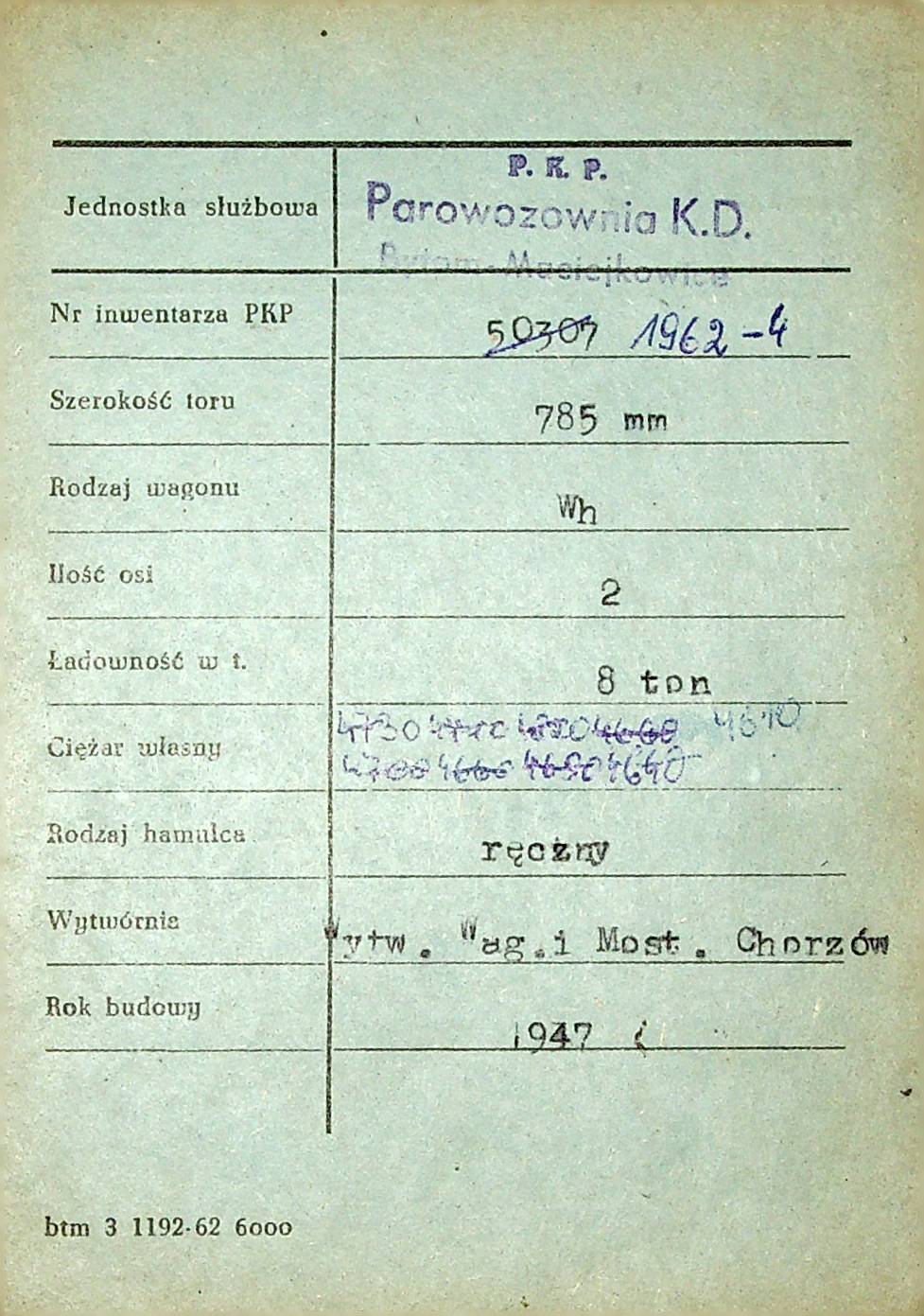 Karta wagonu Górnośląskich Kolei Wąskotorowych |
