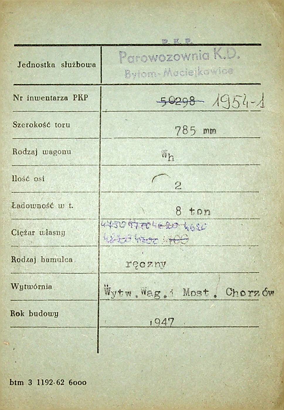 Karta wagonu Górnośląskich Kolei Wąskotorowych |