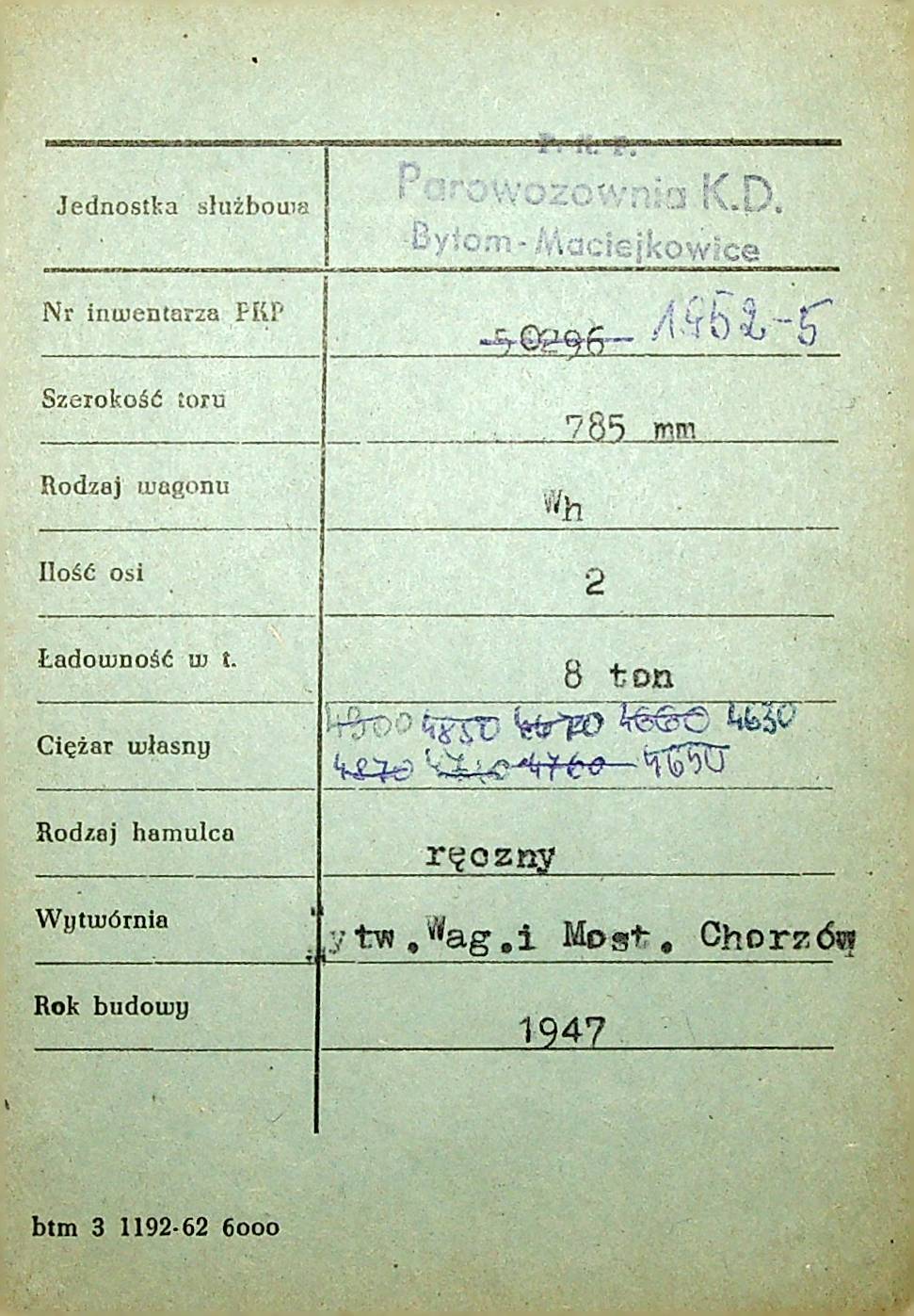 Karta wagonu Górnośląskich Kolei Wąskotorowych |