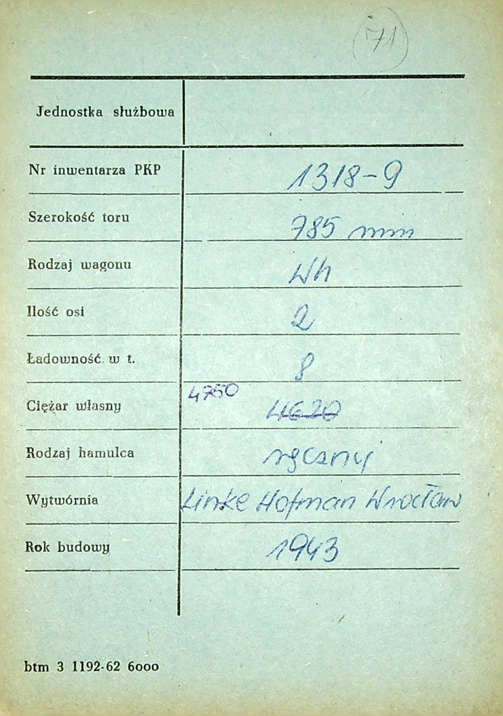 Karta wagonu Górnośląskich Kolei Wąskotorowych |