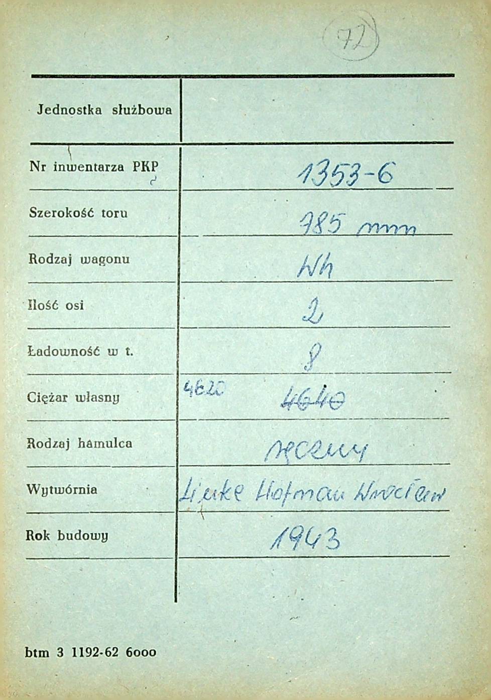 Karta wagonu Górnośląskich Kolei Wąskotorowych |