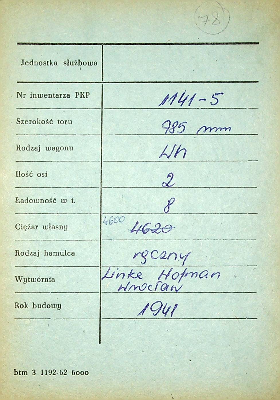 Karta wagonu Górnośląskich Kolei Wąskotorowych |