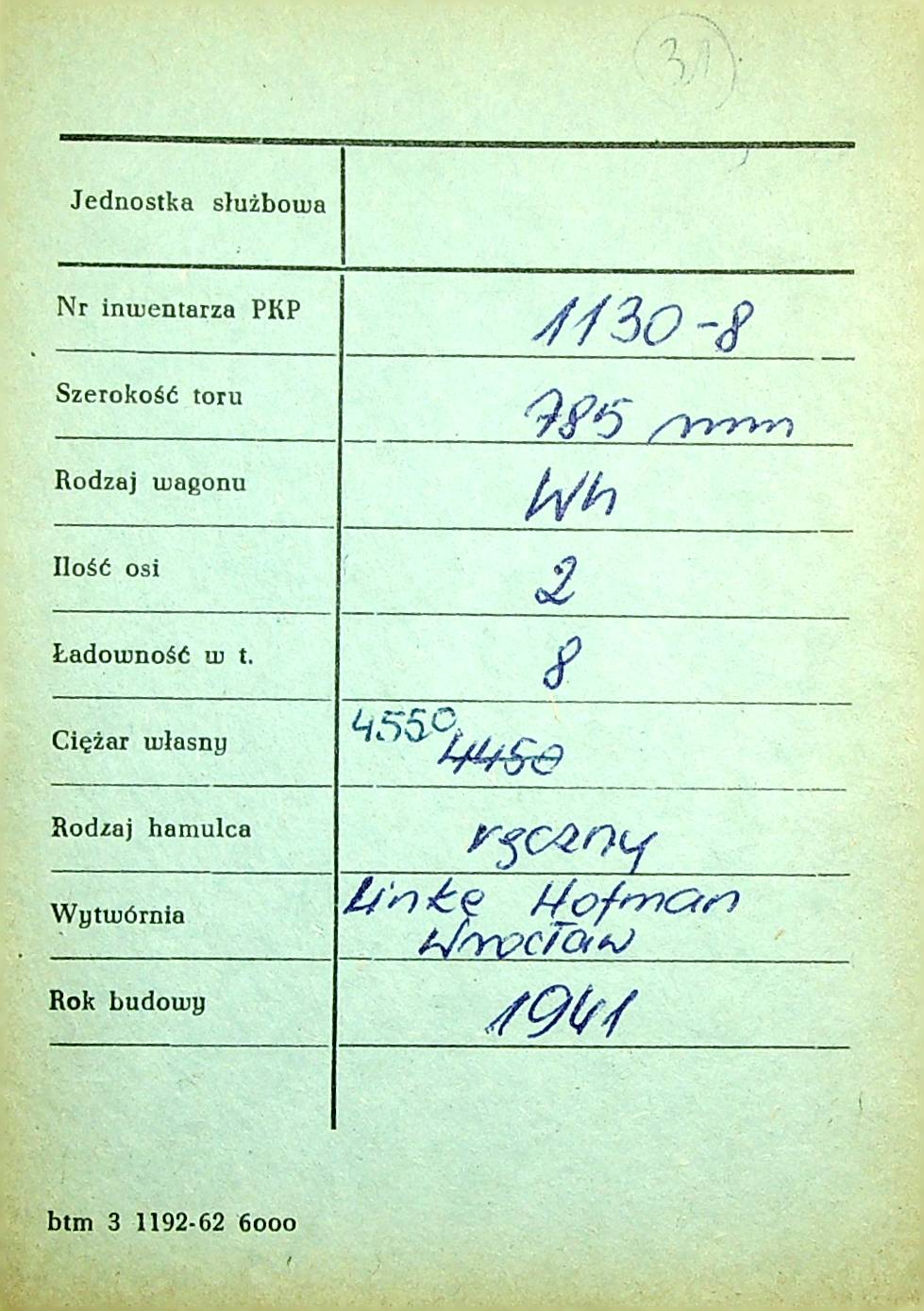 Karta wagonu Górnośląskich Kolei Wąskotorowych |