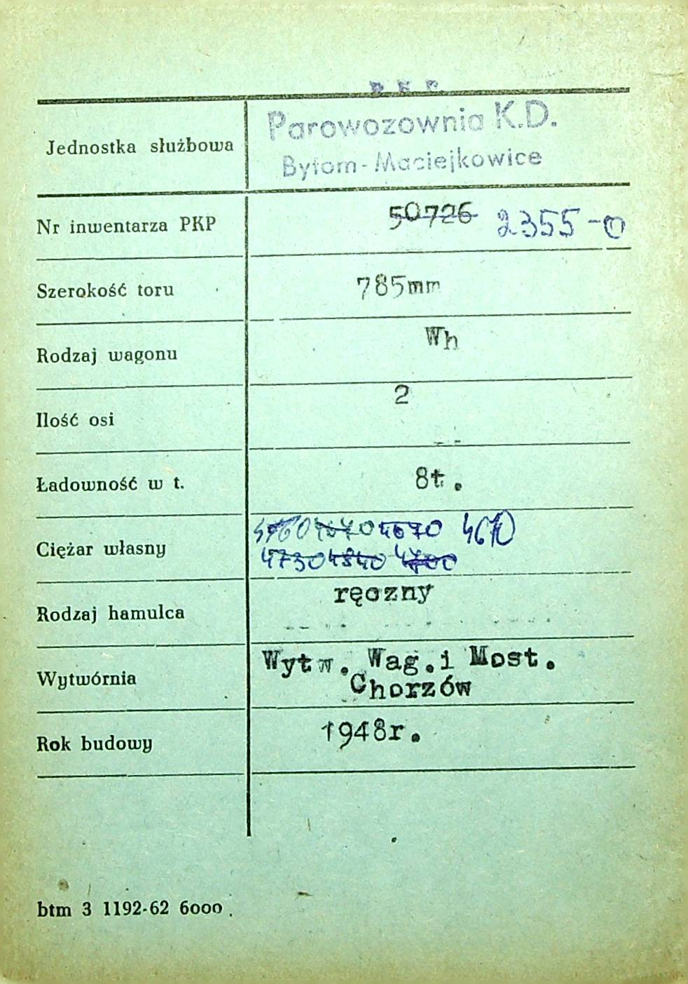 Karta wagonu Górnośląskich Kolei Wąskotorowych |