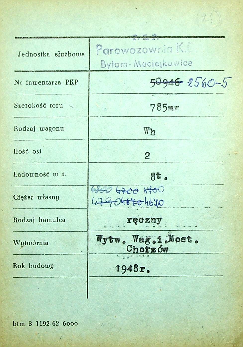 Karta wagonu Górnośląskich Kolei Wąskotorowych |