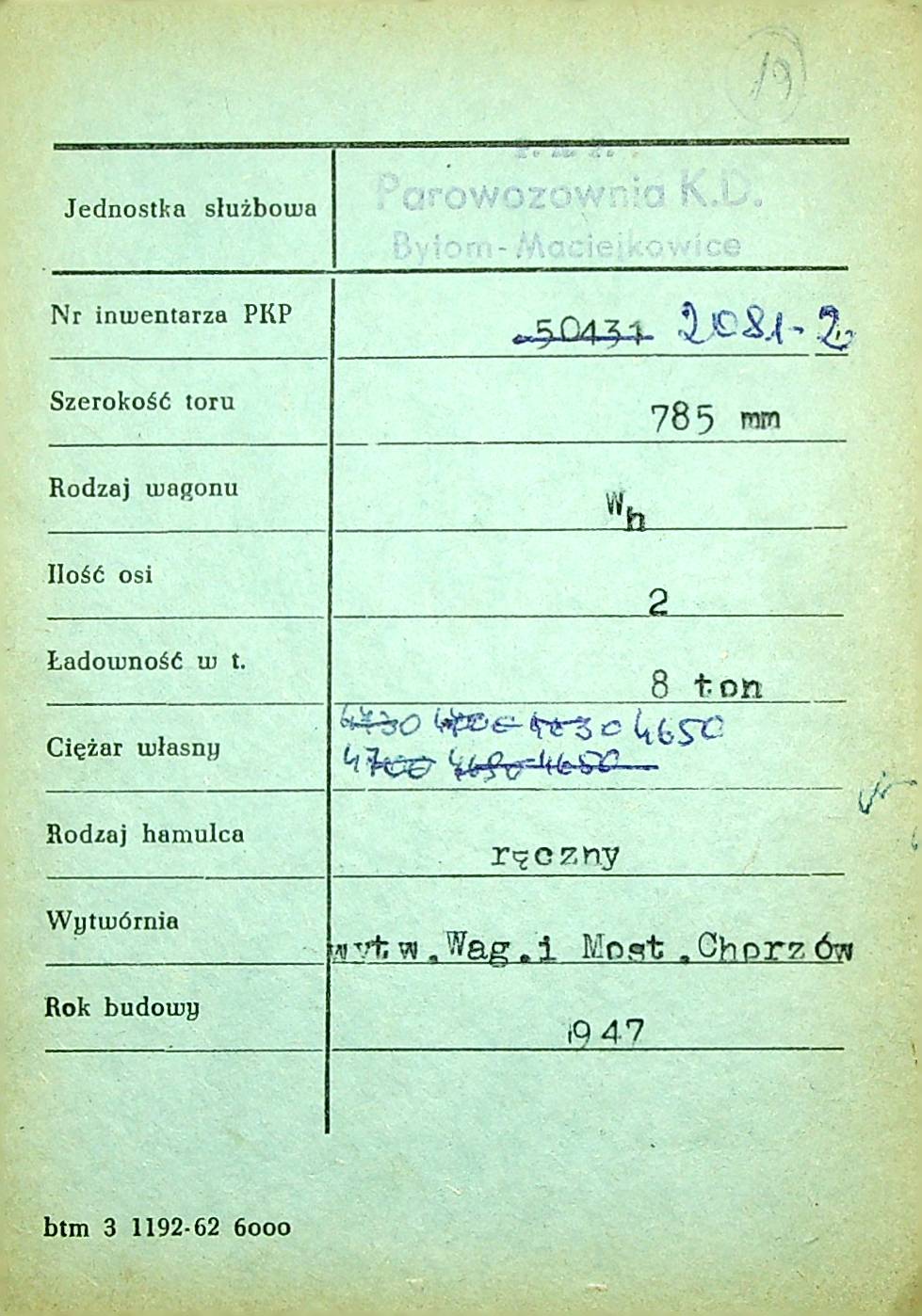 Karta wagonu Górnośląskich Kolei Wąskotorowych |