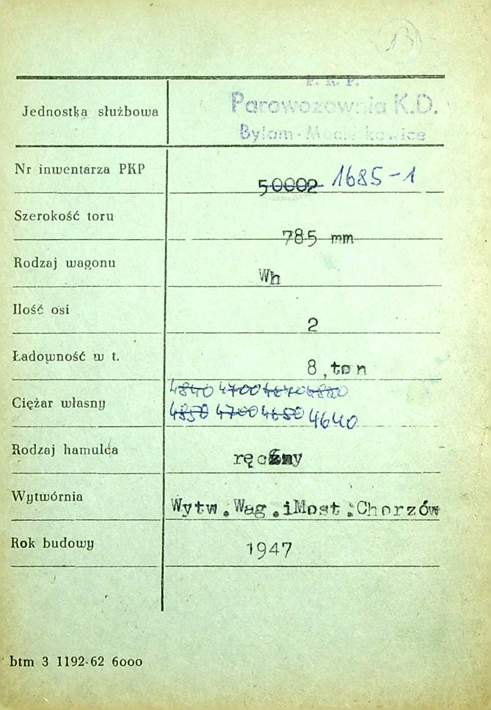 Karta wagonu Górnośląskich Kolei Wąskotorowych |