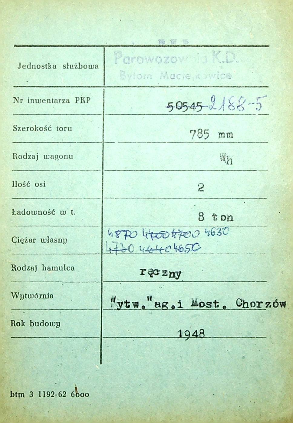 Karta wagonu Górnośląskich Kolei Wąskotorowych |